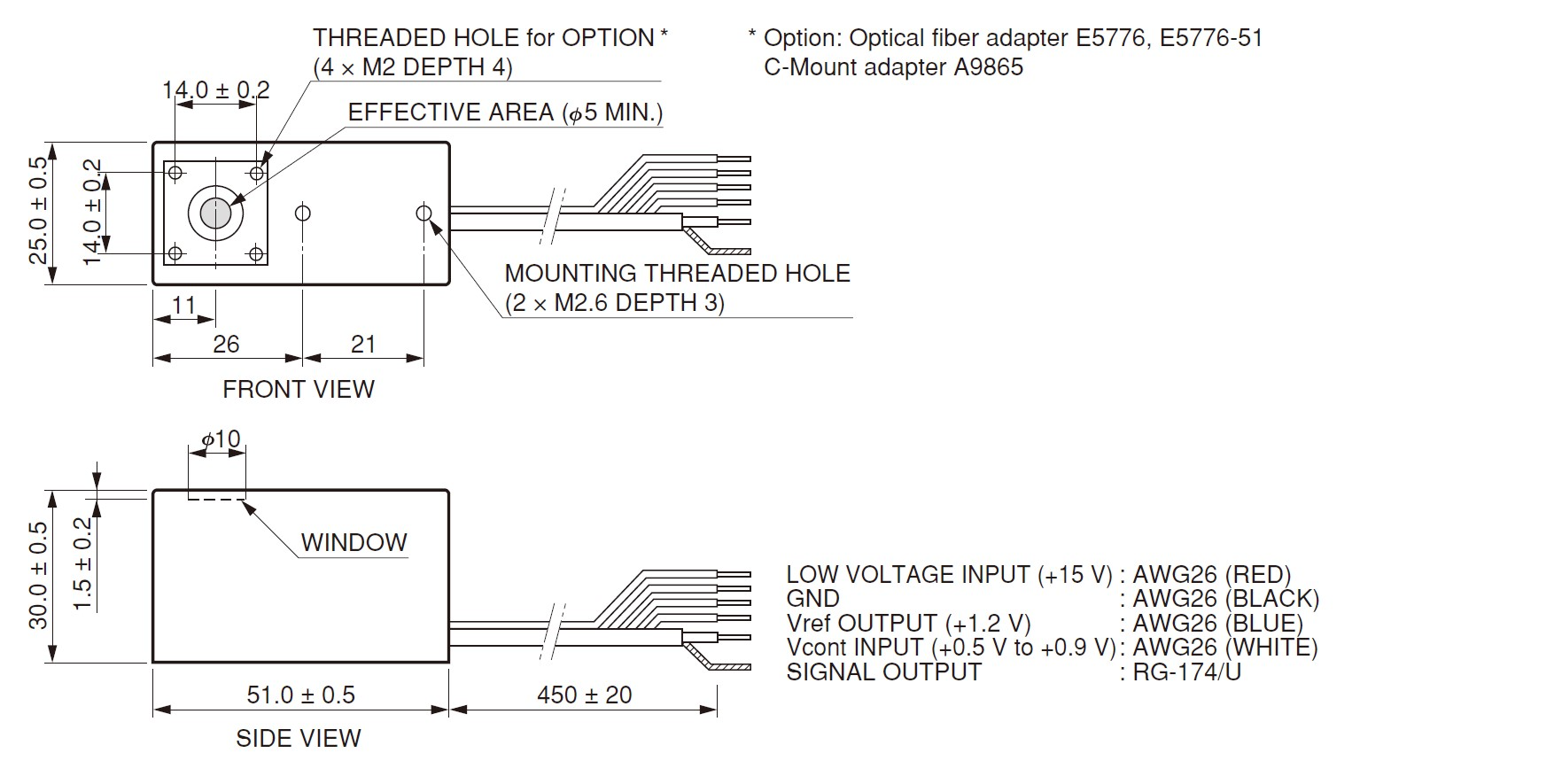 光阴极面区域尺寸 | 5 mm 直径 |