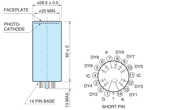光阴极面区域尺寸 | 25 mm 直径 |
