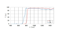 技术指标 | 材质 | B270®(白板玻璃)或BK7 | 入射角度 | 45° | 适用波长 | 400~2000 nm | 表面质量 | 80−50 | 有效直径 | 外形尺寸90%的正方形内接圆 | 长度 A | 50.8±0.5 mm | 厚度 t | 3.3±0.3 mm | 透过谱区波长(45°入射) | 800 - 2000 nm | 透过谱区透过率(45°入射) | >75% | 遮断谱区波长(45°入射) | 400 - 700 nm | 遮断谱区反射率(45°入射) | >95% | 半峰值波长 (50%) | 760±10 nm |