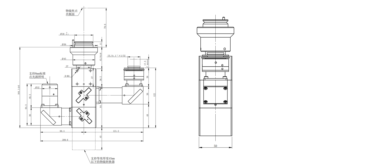 物镜接口 | 支持等效厚度45mm以下的物镜转换器 |