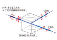 注意 | ▶从没有○记号的棱镜侧面射入光时,透过率或消光比的特性可能会发生变化。 ▶与透过光的消光比相比,反射光的消光比稍微差一点。(3/100左右) ▶在适用波长之外使用时,透过率或消光比会变差。 ▶由于材料的折射率和玻璃厚度的影响,透过光或反射光会产生波长分散。而且,在收缩或发散的入射光线中使用后,可能产生色差或球差。 | ||||||||||||||||||||||||||