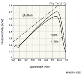 测量条件 | 典型值 Ta = 25°C,除非另有说明 每个像元,感光灵敏度:λ = λp,暗电流:VR = 10 V,全部 16 个像元,结电容:VR = 10 V,f = 10 kHz,全部 16 个像元 |